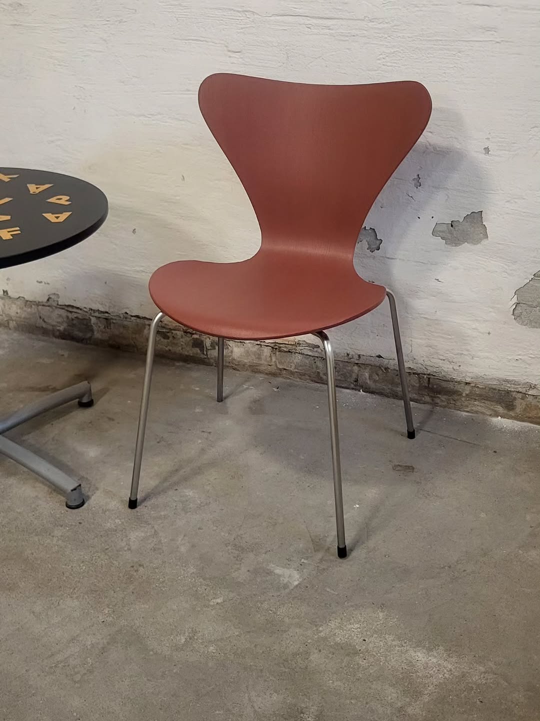 Den lille børneskammel og stolen er malet med Rød Kyst og afsluttet med Ultramat Lak.