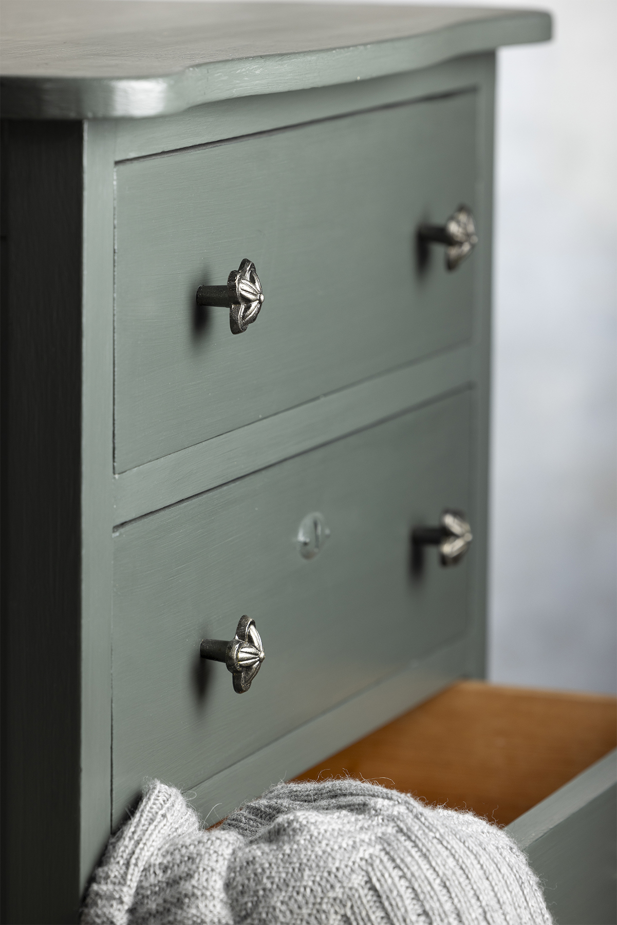Det fineste jern knob fra Chic Antique. Dette greb er i en skøn antique silver farve, og da den ikke er så stor er den særlig flot på små skabe og skuffemøbler. Grebet fra Chic Antique er meget nem at skifte ud med de eksisterende greb, for at skabe et helt nyt look på dit møbel. Har du renoveret og malet et gammelt skab eller skuffemøbel, giver det den sidste finish at skifte de gamle greb  så du opnår et helt nyt møbel med din helt personlige stil, som passer lige netop til din indretning. Vi har et stort udvalg i greb og knopper, her er det fra Chic Antique.