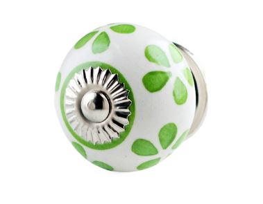 Et rigtigt fint greb i porcelæn fra la Finesse. Det gør underværker at skifte greb ud på et kedeligt møbel, som mangler at blive "frisket op". Du får et helt nyt og flot møbel som passer ind i din stil, eventuelt kan du også male møblet med kalkmaling, for at fuldende dit projekt. Kedelige skabslåger og skuffer får nemt et nyt liv ved at skifte grebene, og du kan selv vælge hvilket udtryk dit møbel skal have. Denne smukke porcelænsknop er hvid med forårsgrønne blade mønster.